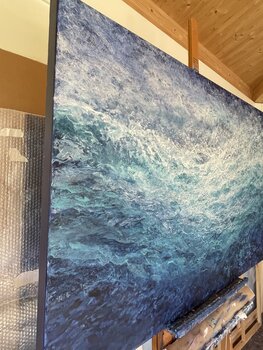 Das mittelgroße Werk „Sound of Seas“ erzählt vom Rauschen des Meeres, seiner kraftvollen Dynamik und dem ungestümen Walten des Wassers. Es fängt die überschäumende Energie des sich brechenden Wassers mit den tiefen, beruhigenden Blau- wie Türkistönen des Ozeans ein. Schaut man genau, kann man das Rauschen des Meeres hören, die Gischt förmlich spüren. Verschiedene Farbaufträge und mehrfache Schichten erzeugen den Eindruck von Tiefe und Bewegung -… von tanzendem Wasser und brechender Welle. Dieses Kunstwerk bringt die emotionale Tiefe und die erfrischende Präsenz des Meeres in jeden Raum - eine Hommage an die ungezähmte Schönheit der Natur.