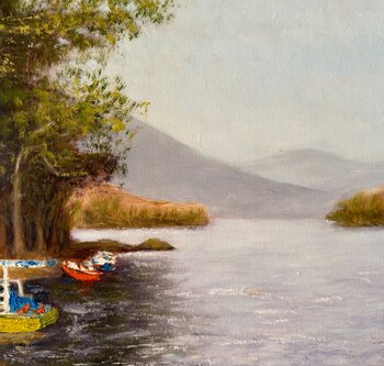 In diesem Ölgemälde habe ich die Ruhe der Natur durch sanfte Pinselstriche und warmes Licht eingefangen. Die farbenfrohen Boote, die am ruhigen Wasser ruhen, laden zu einem Moment der… friedvollen Besinnung und der Verbundenheit mit den einfachen Freuden des Lebens ein. Es ist eine stille Huldigung der Stille und der Schönheit der Natur.