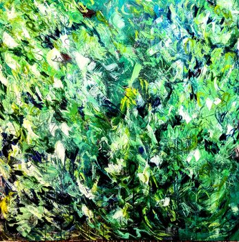 In einer Zeit, in der vieles grau und dunkel und kalt erscheint und das abgesehen von der Winterzeit hat die Künstlerin ihren ganz eigenen Weg zur Freude gewählt. Im Prozess selbst vollzieht sich eine bemerkenswerte Wandlung: von Dunkel zu Helligkeit, von Schwarz und Grau zu vibrierender Farbigkeit, von Winter zu Frühling und von Verzweiflung und Angst zu purer Freude! Und genau diese Freude, dieses Glück ist es, die die Künstlerin dem Betrachter… vermitteln will. Diesen Wandel kann man auch gut im hinzugefügten Video nachvollziehen. Dafür hat sie eine traumhafte, expressiv abstrahierte Naturdarstellung gewählt, die voller positiver Energie steckt und sich beim Betrachten augenblicklich überträgt. Die Kombination von Acryl und Öl unterstützt und veredelt die gesamte Komposition. Das Gemälde ist auf ungespannter Leinwand gemalt und wird ungespannt in einer Rolle versendet. Das ungespannte Format der Leinwand ist 160 x 160 cm, aufgespannt ca. 150 x 150 cm.