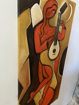 Ein Kunstliebhaber, Kauf getätigt am November 2023: "Le Violoncelle de Cobalt", Acryl auf Leinwand , 18 x 18 in