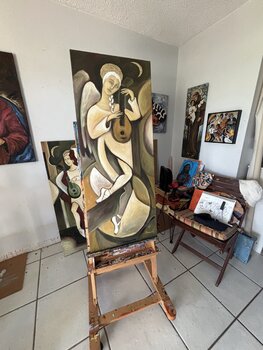 Ein Kunstliebhaber, Kauf getätigt am November 2023: "Le Violoncelle de Cobalt", Acryl auf Leinwand , 18 x 18 in