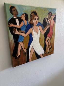Valerie Vescovi ist eine preisgekrönte amerikanische Malerin, die an mehreren Ausstellungen in ganz Florida teilgenommen hat. Sie hat ihren eigenen neokubistischen Stil entwickelt und ihre Abstraktion mit Musikern und Tänzern könnte als "rhythmischer Kubismus" bezeichnet werden. Vescovis Arbeiten zeichnen eine vielfältige und vollständige Geschichte durch hohen Kontrast und kühne Linienführung. Sie kreiert sowohl mit Öl als auch mit Acryl auf Leinwand.