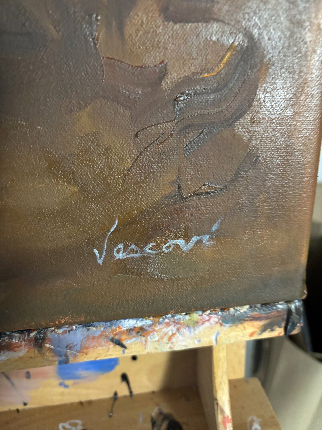 Ein Kunstliebhaber, Kauf getätigt am November 2023: "Le Violoncelle de Cobalt", Acryl auf Leinwand , 18x18in