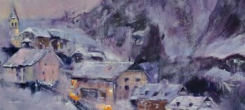 Bei der Erstellung dieser Arbeit wollte ich die ruhige und fast mystische Essenz einer Winterlandschaft einfangen. Mit Öl und Kreide habe ich Farbschichten aufgetragen, um die Kühle und Stille des Schnees hervorzurufen, der das Dorf umhüllt, und so ein Gefühl friedlicher und dennoch verbundener Isolation zu schaffen. Jeder Pinselstrich soll das Gefühl einer stillen Umarmung der Natur vermitteln und zum Nachdenken und einem Gefühl des inneren Friedens… einladen. Dieses Gemälde bereichert einen Raum nicht nur ästhetisch, sondern verleiht ihm auch eine ruhige und nachdenkliche Energie.