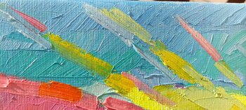 "Ich habe sehr schöne Erinnerungen an die Toskana. Dieses kleine Gemälde bringt mich für einen Moment zurück und die farbenfrohe Landschaft macht mich glücklich."