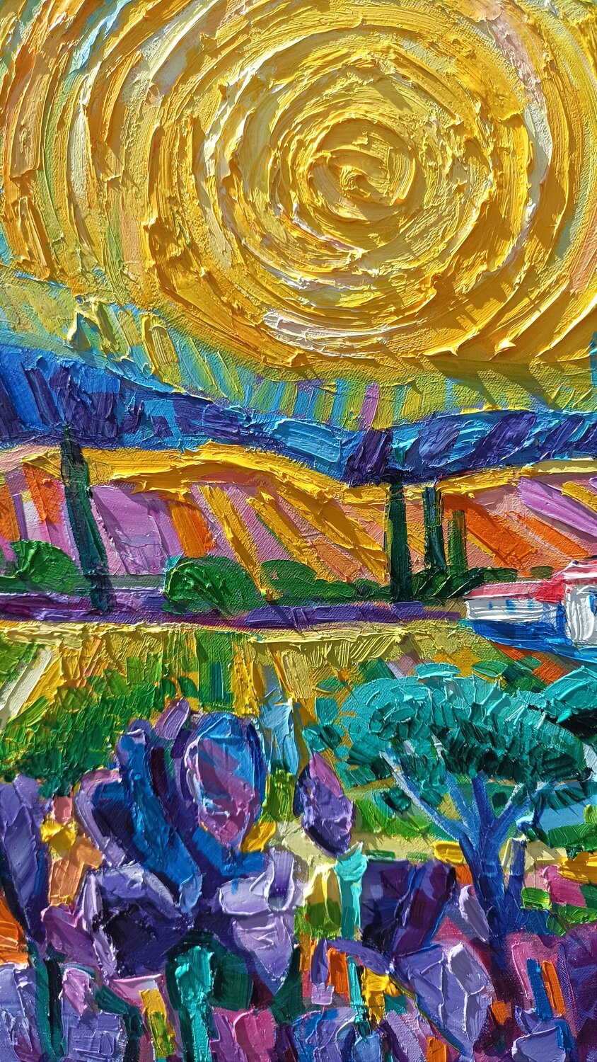 "Ich habe sehr schöne Erinnerungen an die Toskana. Dieses kleine Gemälde bringt mich für einen Moment zurück und die farbenfrohe Landschaft macht mich glücklich."