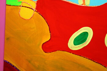 Die kontrastierenden Farben – Rot, Grün, Gelb und Himmelblau – spiegeln die Spannung zwischen Materie und Geist, Körper und Seele, Wurzeln und Transzendenz wider. Die fließenden Formen an der Basis erinnern an die Energie der Vorfahren, erdend und zugleich transformierend.