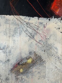 Mein Gemälde „Black Swan“ ist eine kraftvolle, abstrakte Komposition, die Kontraste und Dynamik miteinander verbindet. Die schwarze Form, durchzogen von feinen Linien und warmen, leuchtenden Akzenten in Rot und Orange, zieht den Blick in eine geheimnisvolle Tiefe. Blattgold setzt schimmernde Highlights, die dem Werk eine elegante, fast fragile Dimension verleihen. Die vielschichtige Struktur, geschaffen durch Acrylfarbe und den expressiven Einsatz… von Kohlestift, lädt zur individuellen Interpretation ein. „Black Swan“ erzählt von Stärke, Veränderung und dem Mut zur Einzigartigkeit – ein Werk, das in jeder Nuance Lebendigkeit und emotionale Tiefe spürbar macht.