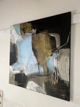„Berührung im Zwischenraum“ entstand aus einem inneren Spannungsfeld zwischen Nähe und Distanz, zwischen dem Wunsch nach Verbindung und der Angst vor Auflösung. Während des Malprozesses war ich selbst oft im Unklaren – was entsteht hier gerade? Zwei Formen, zwei Seelen, zwei Pole? Oder vielleicht nur ein einziger Moment der Berührung, flüchtig, aber tief? Die Farbschichten, das Aufreißen und Verdecken, spiegeln diesen Zwischenraum wider – ein Ort,… an dem nichts eindeutig ist, aber alles spürbar. Der Titel kam zu mir erst spät, aber er fasst das Gefühl perfekt zusammen: Es geht um das, was zwischen uns liegt – unausgesprochen, unbenennbar, und doch voller Bedeutung.