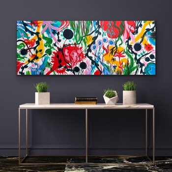Dieses lebendige Acrylgemälde strotzt nur so vor Energie und Leben und fängt die chaotische Schönheit der Natur und die Verflechtung von Emotionen ein. Ich habe meine Leidenschaft in jeden Pinselstrich gesteckt und kräftige Farben und organische Formen kombiniert, um Bewegung und Freude hervorzurufen. Es bringt dynamische Energie und einen lebendigen Geist in jeden Raum und ermutigt den Betrachter, sich in seiner farbenfrohen, abstrakten Welt zu…