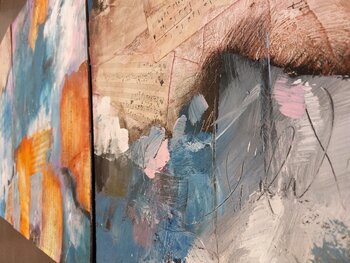 In meinem Werk vermische ich Acryl, Öl und Aquarell mit Kollagentechniken, um eine tiefgründige emotionale Landschaft darzustellen. Die verwendeten Materialien wie Bleistift und Indische Tinte fügen feine Details hinzu, die die Komplexität der Gedanken und Gefühle widerspiegeln, die mich beim Schaffen inspiriert haben. Dieses Gemälde verkörpert die Suche nach Harmonie inmitten des Chaos, eine visuelle Symphonie aus Farben und Texturen, die Ihre Wohnräume… mit Energie und Inspiration erfüllen wird.