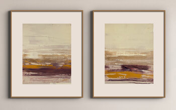 Originales zeitgenössisches Diptychon, gemalt in Öl auf grundiertem Papier. Die Komposition basiert auf einer horizontalen Struktur und einem Schichtauftrag mit sanften Farbübergängen und subtiler Textur. Die warme Farbpalette vereint Ocker, tiefes Pflaumenrot, Beige und Milchtöne und formt so eine ausdrucksstarke abstrakte Landschaft innerhalb der zeitgenössischen abstrakten Malerei. Die horizontalen Linien erzeugen ein Gefühl von Offenheit und… Tiefe und machen das Diptychon zu einer raffinierten Wahl für moderne Interieurs und Kunstsammlungen.