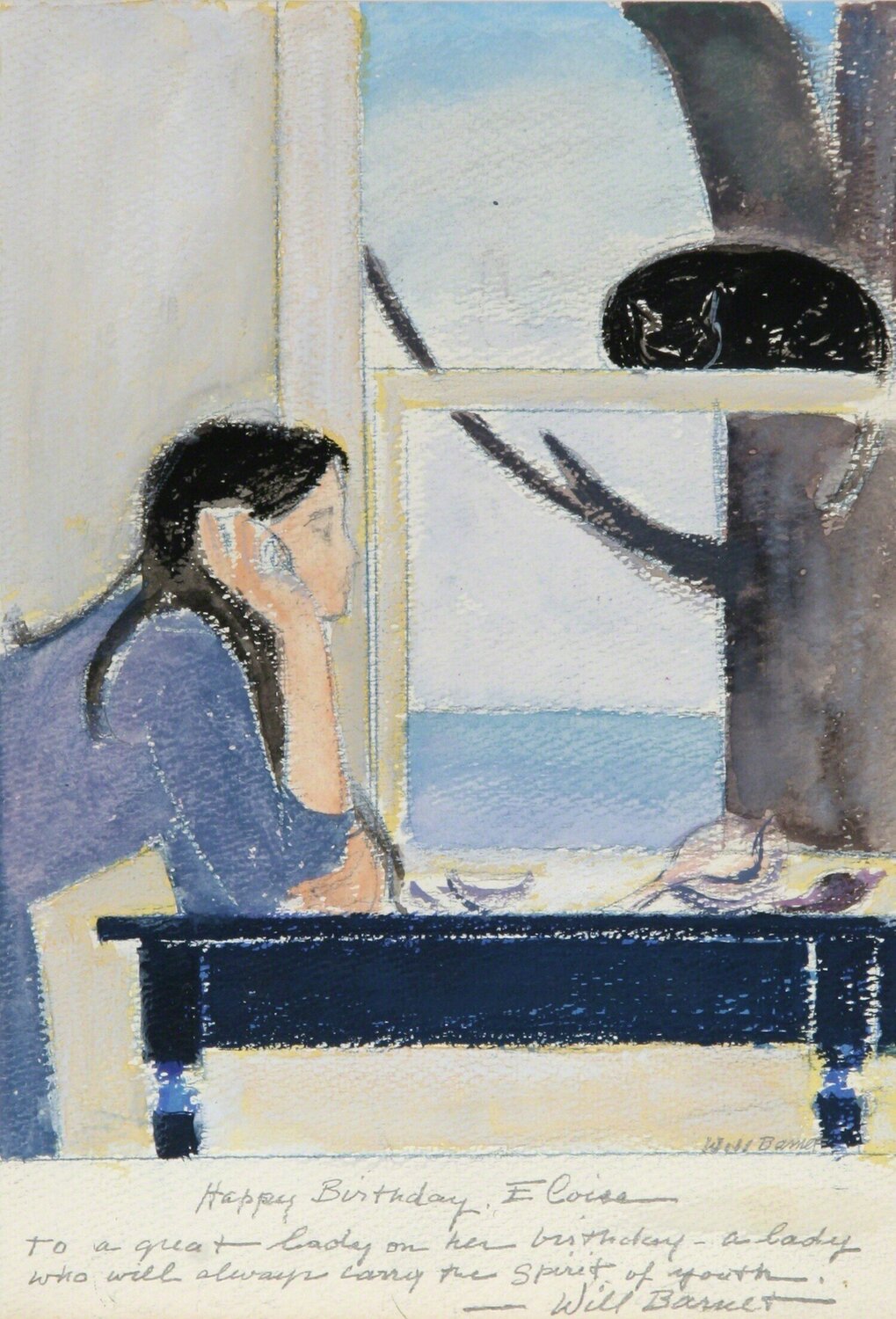 Will Barnet war eine amerikanische Künstlerin, die in den Bereichen Malerei, Zeichnung, Aquarell und Druckgrafik arbeitete und für ihre lebenslange Auseinandersetzung mit der menschlichen Figur und Tieren bekannt war. Ihre Technik wandelte sich elegant vom Realismus zur Abstraktion, wobei sie präzise Linien mit subtilen Farbpaletten verband und so Kompositionen schuf, die sowohl Klarheit als auch Geheimnis ausstrahlen. Ihre Kunst erzeugt eine ruhige, besinnliche Atmosphäre und lädt den Betrachter zu intimen und doch universellen Momenten ein, die in der Fantasie nachklingen.