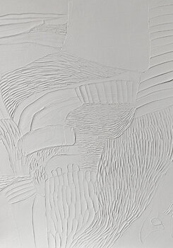 In diesem Werk habe ich meine ganze Energie in die stille Kraft von Textur und Form gesteckt. Mit weißem Acryl habe ich Schichten geschaffen, die zum Berühren einladen und inmitten von Komplexität Ruhe ausstrahlen. Es ist eine Reise subtiler Bewegung – eine tief empfundene Erkundung der Einfachheit, die jeden Raum in einen Ort der Ruhe und konzentrierten Präsenz verwandelt.