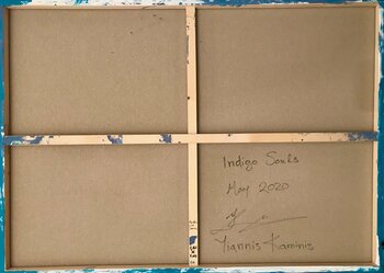 Dieses Gemälde ist eine Suche nach Sicherheit während der Covid-Pandemie. Indigo Souls präsentiert ein Paar, das aufgrund seiner höheren Indigo-Schwingungen vor äußeren Bedingungen geschützt ist. Das folgende Gedicht erklärt mehr von der Inspiration.