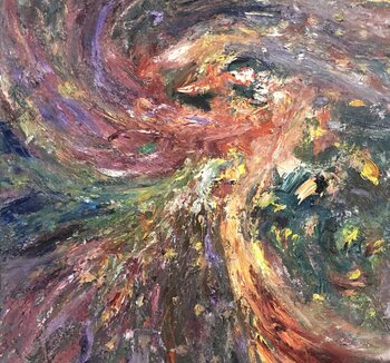 In diesem Wirbelsturm der Farben entfesselte ich meine Leidenschaft auf der Leinwand, indem ich Acryl und Öl verwendete, um turbulente Emotionen und den Tanz des Chaos des Lebens zu formen. Als Künstler greife ich den abstrakten Expressionismus an, um eine intensive Reise darzustellen und den Betrachter in einen Strudel der Gefühle einzuladen. Dieses Gemälde ist ein Sturm, ein lebendiger Gesprächsstoff, der jedem Raum, den es einnimmt, dynamische… Energie und ungezähmte Leidenschaft verleiht.