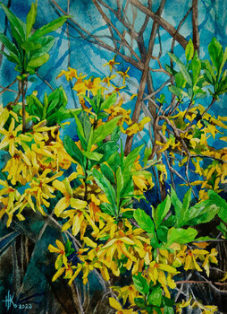 Ich habe dieses Bild gemalt, um diesen Ausbruch goldenen Glücks einzufangen, die erste furchtlose Erklärung, dass der Frühling wirklich begonnen hat. Jeder leuchtend gelbe Strich fühlt sich an wie Sonnenlicht, das durch einen bewölkten Morgen bricht.