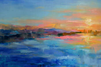 In diesem leidenschaftlichen Tanz der Öle habe ich das vergängliche Wechselspiel des Lichts eingefangen, das in der Abenddämmerung das Wasser und den Himmel umarmt. Die ausdrucksstarken Striche verkörpern eine ruhige und dennoch lebendige Energie, während die halbabstrakten Formen den Betrachter dazu einladen, in der flüchtigen Schönheit des Augenblicks zu verweilen. Es ist eine visuelle Symphonie, die Frieden und Besinnung hervorrufen soll und perfekt geeignet ist, eine harmonische Atmosphäre in Ihren Raum zu bringen.