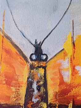„Flight of Hope“ ist ein ausdrucksstarkes Ölgemälde, das innere Stärke und Transformation symbolisiert. Ein großer Schmetterling mit feuergelben und terrakottafarbenen Flügeln dominiert die Leinwand und steht für Freiheit, Licht und Vorwärtsbewegung. Energetische Pinselstriche und tropfende Texturen verleihen dem Werk Vitalität und Bewegung.