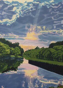 Just as dawn was breaking over the Cooks River, the sky above was putting on the most incredible performance – layers of clouds catching and reflecting the dawn light in these magnificent blues and golds. The peaceful water mirrored everything, creating this incredible sense of being surrounded by sky both above and below. I was captivated by how this humble urban waterway was transformed into something almost sacred by the quality of morning light.… The lush green banks, so vibrantly alive in the soft dawn air, framed this celestial show like theater curtains. There's something magical about Sydney's early mornings – how they can turn even the most ordinary places into stages for nature's daily masterpiece. I felt like I had a front row seat to this grand performance that happens every day, yet never quite the same way twice.