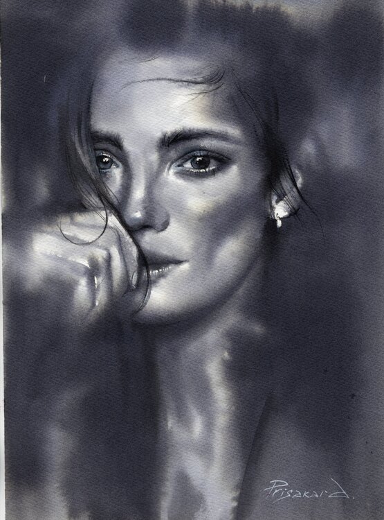 In this piece, I captured a quiet, introspective moment through delicate watercolor washes, blending realism with vintage softness. The subtle shadows and minimal palette invite you to feel the depth of emotion behind the gaze—vulnerability, strength, and mystery intertwined. Bringing this painting into your space will evoke a serene, contemplative energy, encouraging quiet reflection and connection with the unsaid stories within us all.