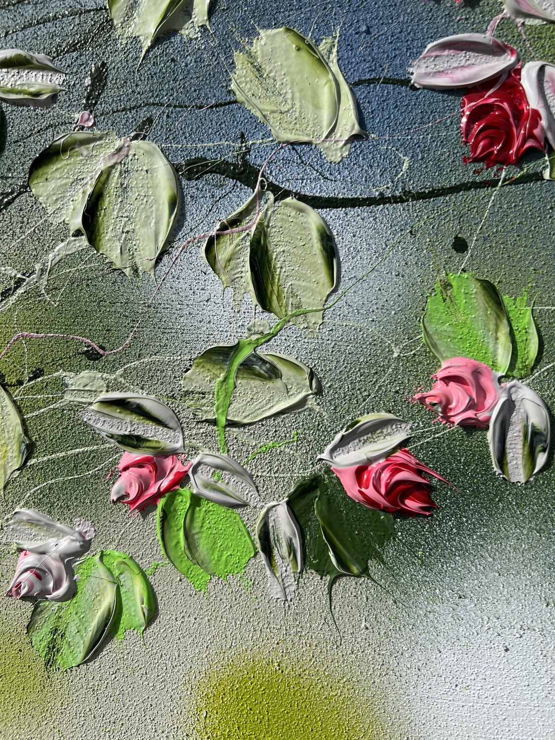 Anastassia Skopp combines very personal spiritual exploration with floral motifs in her paintings. Her technique, influenced by abstract impressionism and modern art, uses mixed media to create tangible, three-dimensional surfaces. Her art radiates inner silence and invites contemplation, a calming of daily chaos.