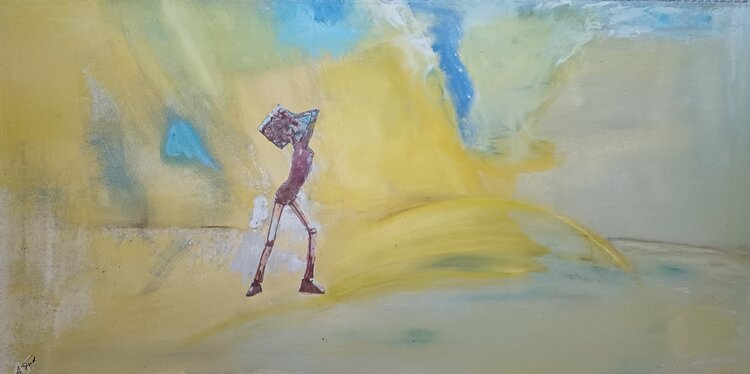 In this work, I combined the techniques of acrylic painting, collage, and pastel drawing. The chosen colors and textures are intended to capture the essence of the human experience in a dynamic, almost dreamlike desert landscape. The figure, solitary yet powerful in its simplicity, symbolizes life's journey—marked by strength, hope, and the never-ending search for meaning. This artwork will bring expressive and emotional energy to any home. Inspired… by a sculpture on the beautiful island of Mallorca.