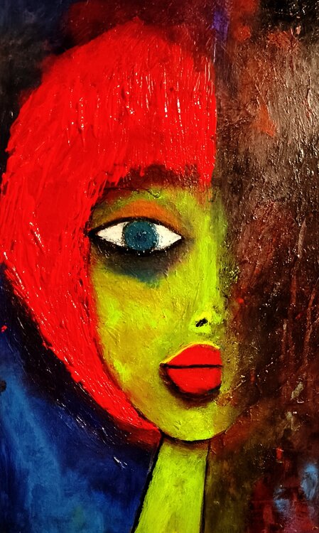 The artwork depicts a face with an air of doubt, hence its title. Painted on canvas with vibrant colors, it offers a modern interpretation of the subject.