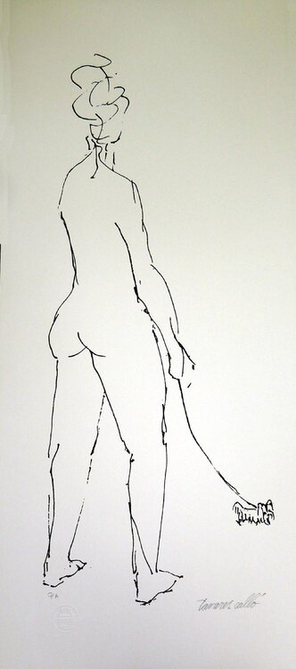 In this piece, I explored the elegance and simplicity of form through a minimal line style. With each stroke, I sought to capture the fluidity of the human figure and its interaction with the surroundings, embodied here by the playful interaction with a small dog. This artwork conveys a sense of peace and a gentle reminder of the joy found in simple companionship. It's intended to bring a serene yet vibrant energy into any space it occupies.