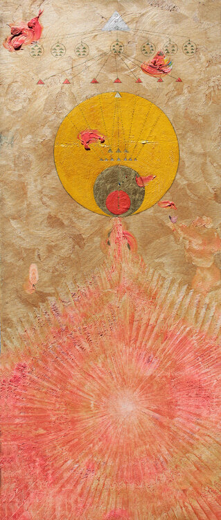 This work is a fusion of oil and collage techniques, where I capture the essence of oriental art with a symbolic and metaphysical touch. The vibrant elements and rich textures invite reflection, projecting energy and mysticism that will transform any space, inviting the viewer on a unique emotional journey. It is a celebration of deep emotions and the inexplicable connection between them.