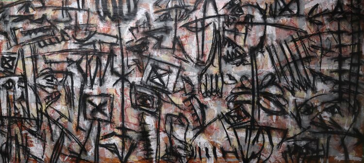 In the same vein as "Momentarily in Parentheses," this work is intended as a point of rebellion against still having received accurate information about my health. If the former represented the observation and acceptance of the situation, this one represents much more the anger and rage for life that I felt on April 26, 2024, in front of my 8-foot-long easel. I love working on paper, especially Red Rosin Paper, since its coarse, almost rag-like texture… leads me to a fervent and vigorous gestural approach to creation that is more spontaneous than meticulous and deliberate.