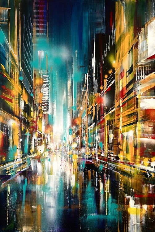 Immerse yourself in this unique acrylic canvas inspired by a semi-abstract cityscape that encapsulates the electrifying essence of urban nights in New Kyoto. The dynamic brushstrokes evoke a sense of energy and movement, inviting viewers to experience the vibrant life that pulses around the clock. This painting infuses any space with a lively, contemporary spirit, transforming your home into a dazzling tapestry of city lights and boundless opportunities.… Let the artwork serve as a visual reminder of the excitement and possibilities that urban life has to offer.