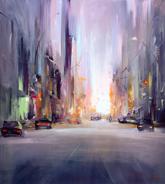 The goal in every painting that Bozhena Fuchs creates is to make it come alive. She enjoys art that breathes and has a story to tell. The Czech artist paints using intense and vigorous brushstrokes in order to express power, emotion, and movement with oils. Adding thick layers of oils with a palette knife, she imbues her compositions with a sense of energy.