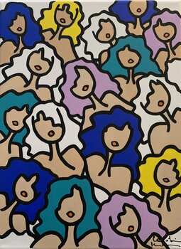 Caroline takes her Little Nanas into the world of Keith Haring! The faces are refined, the flat areas of paint are strong…