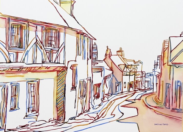 Christine Beard is a self-taught watercolour artist whose prolific output channels her passion for painting into luminous scenes of daily life. Her technique features clean lines and gentle movement, layered with a signature limited six-colour palette, often depicting figures and architecture from striking aerial perspectives. Through her art, she seeks to evoke the quiet poetry of unspoken moments and the beauty found in the ordinary, suffusing viewers with nostalgia and tranquility.