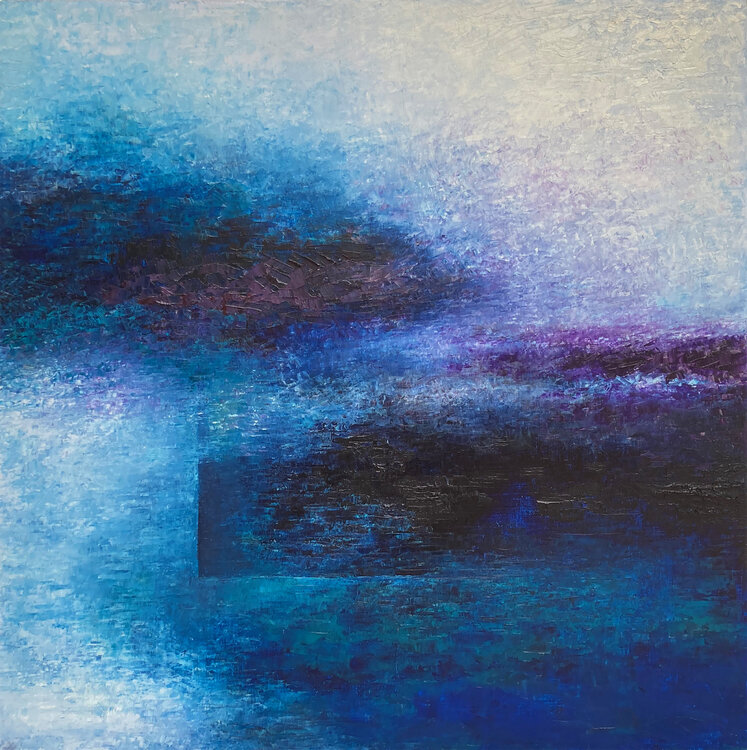 This oil painting channels the deep emotions of tranquility and mystery through abstract shades of blue and purple. I wanted to invite viewers into a calm, immersive space where light and darkness dance together. Placing this in your home will fill the room with peaceful energy and inspire quiet reflection, making it a serene escape from everyday chaos.