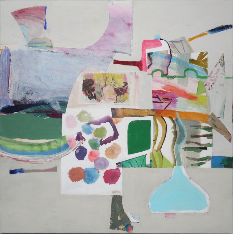 In my work, acrylic, collage, gouache and chalk merge into an abstract composition that exudes dynamism and vitality. Colors and shapes interact playfully and create a visual dance that fills the space. Every angle reveals a new facet of this energetic scene - a feast for the senses that invites viewers to move and dream in their thoughts.
