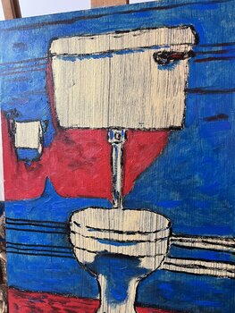 In this piece, I channeled raw emotion and tension through bold, frantic strokes and vivid contrasts of blue and red. The abstracted form captures the stark, often overlooked everyday moment, transforming it with expressionist energy. This painting pulses with intensity, ready to electrify your space with its unapologetic vibrancy and deep, visceral impact.