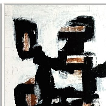 In this piece, I poured raw energy through bold black forms and earthy browns, set against a textured white backdrop. The acrylic strokes pulse with rhythm, evoking a dance of structure and freedom. It radiates a powerful intensity that invites reflection and sparks curiosity, perfect for awakening a room with its dynamic spirit and abstract depth.