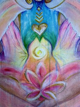 In this work, "REBUS - Secret of BEING," I have captured the mysterious energy of being—an invitation to experience the spiritual fifth dimension. Using acrylic, oil, pastel, and gold leaf, I created a vibrant aura that symbolizes pulsation and healing. The painting radiates a powerful, peaceful energy that fills any space with inner calm and deep connection. It is a visual meditation for mind and soul.