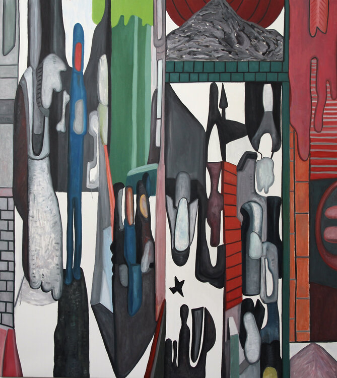 In this work, I played with intense forms and surreal figures to create a world between reality and dream. The oil painting gives the scene depth and life, while the semi-abstract elements invite reflection. It is a piece that generates dynamism and tension in any room, full of mysterious energy that transports the viewer to another dimension.
