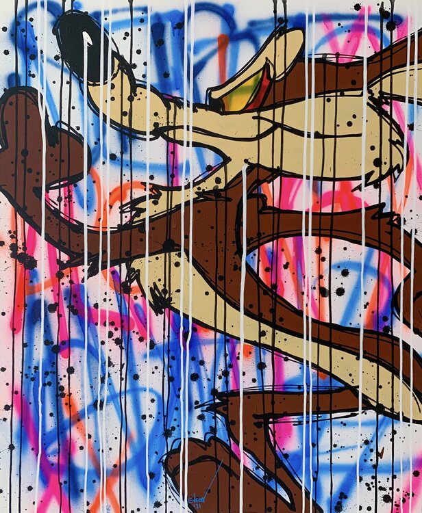 With this piece, I've woven vibrant acrylics and bold graffiti strokes to manifest a visual symphony that sings of individuality and movement. Inspired by the dynamic clash of pop art and comic sensibilities, the merging of figures and abstraction encourages the observer to embrace their unique journey. Envision the pulsating colors and expressive lines infusing your space with a spirit of defiance and the joy of self-expression.