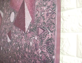 The interplay of abstract shapes and textures creates a meditative space, reminiscent of the subconscious… mind's beauty and complexity. The artwork's serene atmosphere makes it a unique piece of symbolism and expressionism. This is a large square artwork.
