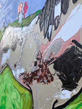 In this painting I have created a vibrant, naive abstract interpretation of a horse in a flowering landscape. The use of acrylic paints allows for bright colors and a playful energy that exudes happiness and lightheartedness. The sunny scene reflects optimism and reminds us of the simple beauty of nature, captured in a moment of joy and color harmony. This work will bring an atmosphere of happiness and vibrancy to any home.