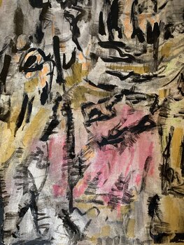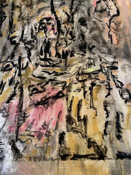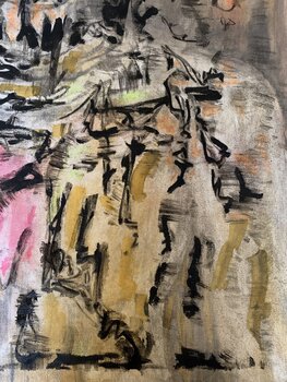 In this work, I blended oil, charcoal, and pastel to create a chaotic ballet of emotions and abstract forms. This dreamlike, even surreal, world transports you elsewhere. Each stroke is a pulse, each area a secret to be discovered. I wanted to capture the dream's fluidity between reality and imagination, bringing a vibrant energy that will awaken the soul and invite introspection within your own space.