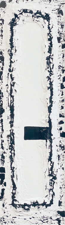 In my abstract acrylic painting I play with the concepts of space and entrance by suggestively depicting a door. This work, created in an expressionist style, explores the boundaries between the hidden and the obvious. The dynamic black brushstrokes frame the silent emptiness of the 'door', which is draped in white, inviting the viewer to use their own imagination as a key to interpretation. This artwork will bring a profound, stimulating energy… to your space.