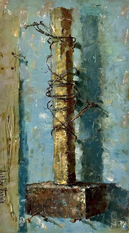 In this oil painting, I captured raw strength and vulnerability entwined. The textured, earthy tones contrast with the cool blue backdrop, evoking resilience caught in tension. I wanted viewers to feel a grounded energy yet recognize the fragile beauty within struggle. This piece brings a powerful, contemplative presence, inviting reflection and a connection to endurance amidst life's binds.