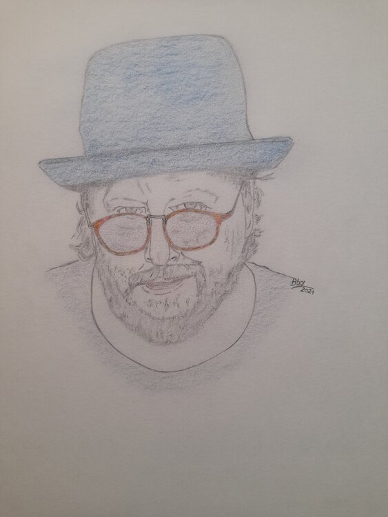 Using pencil and colored pencils, I chose to depict him with simple and economical lines.