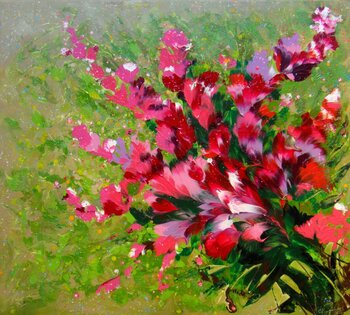 Abstract painting "Bougainvillea " inspired by Irini Karpikioti.