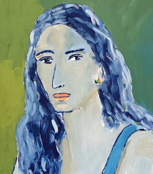 Blue dress is a painting from the series "When the people go blue", it is a daily vision of the people that surround the painter.